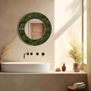 Machové zrkadlo BOLMOSS Natural je jedinečným prvkom, ktorý do vášho domova vnesie harmóniu prírody a moderný štýl. Kruhový rám je pokrytý hustými kopčekmi 100% prírodného stabilizovaného machu, ktorý očarí svojou sýtozelenou farbou a jemnou, príjemnou textúrou. Tento prírodný dizajn sa dokonale hodí ako dominantný prvok do obývačky, spálne či predsiene.