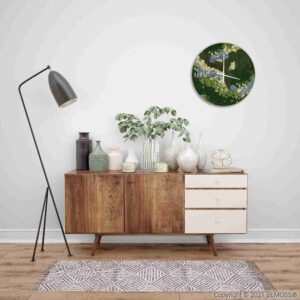 Hodiny sú vyrobené zo 100% prírodného stabilizovaného machu, ktorý nepotrebuje žiadnu starostlivosť, čo ich robí ideálnym doplnkom pre každého, kto hľadá krásu bez údržby. Ich ekologický charakter je v súlade s trvalo udržateľným životným štýlom, a navyše sú hypoalergénne, čo ich robí vhodnými aj pre alergikov. Akustické vlastnosti hodiniek prispievajú k zlepšeniu zvukového komfortu v miestnosti, tlmiac nadbytočný hluk.