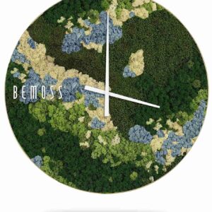 Machové hodiny BEMOSS® ORTHO ICE vynikajú svojím unikátnym dizajnom, ktorý kombinuje prirodzené farby s chladivým nádychom ľadovej krajiny. Na povrchu hodiniek nájdete harmóniu sviežej zelene, jemnej krémovej a bledomodrých tónov, ktoré vytvárajú elegantnú kompozíciu pripomínajúcu zamrznutú prírodu. Táto kombinácia farieb dodáva hodinám nadčasový vzhľad, ktorý oživí akýkoľvek interiér.