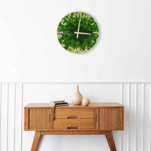 Hodiny sú bezúdržbové, čo znamená, že si zachovávajú svoj svieži vzhľad bez potreby zavlažovania alebo špeciálnej starostlivosti. Stabilizovaný mach je navyše hypoalergénny, vhodný do domácností s alergikmi, a vďaka svojim akustickým vlastnostiam prispieva k zníženiu hluku v priestore. Tento ekologický doplnok je ideálny pre milovníkov udržateľného životného štýlu.