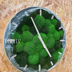 Tieto hodiny sú ručne vyrábané na Slovensku z 100% prírodného stabilizovaného machu, čo zaručuje ich jedinečnú kvalitu a precízne spracovanie. Stabilizovaný mach nepotrebuje žiadnu údržbu, takže hodiny sú bezúdržbové, hypoalergénne a zároveň ekologické. Navyše, ich akustické vlastnosti pomáhajú tlmiť hluk a vytvárajú pokojnejšiu atmosféru v miestnosti.