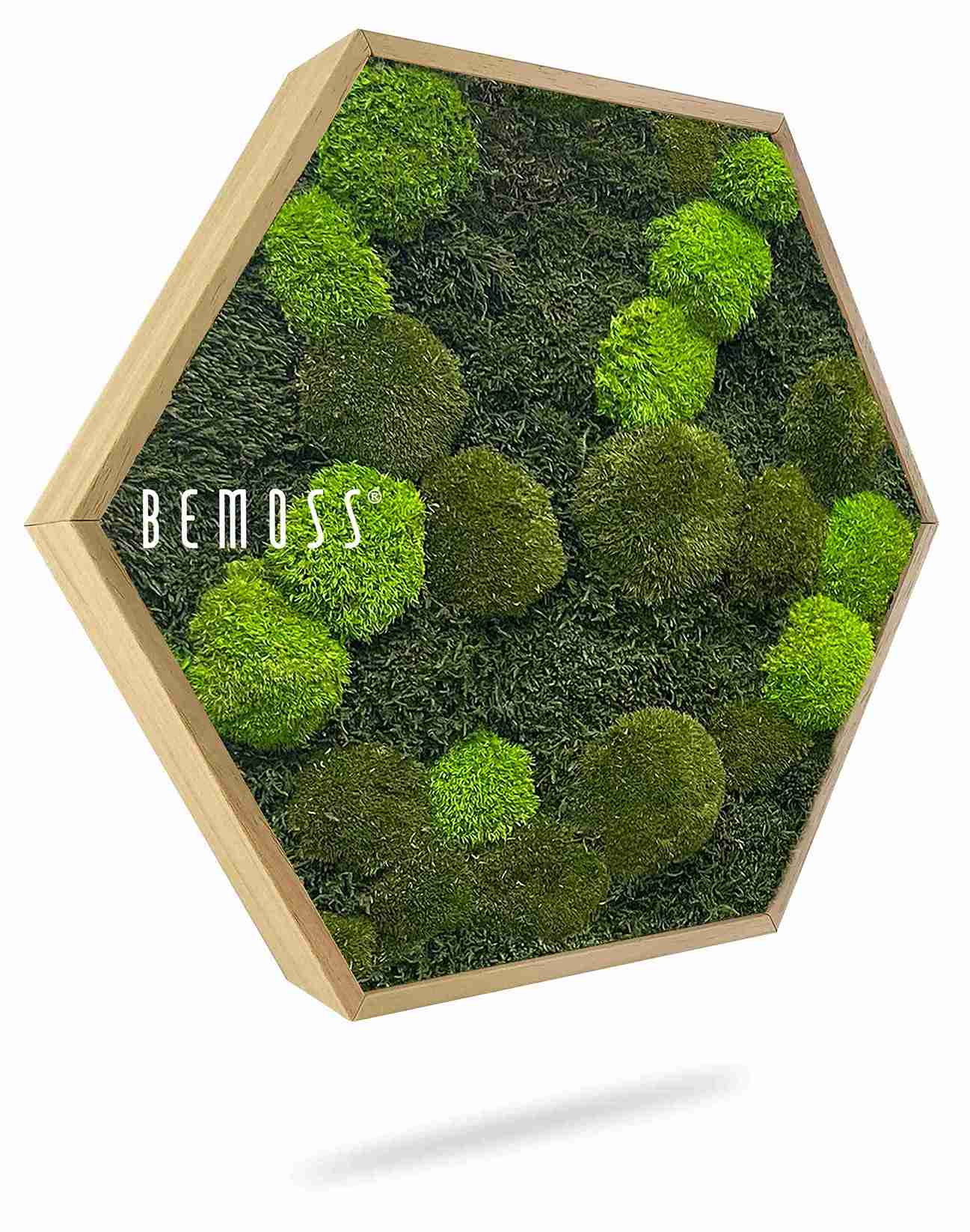 Každý kus je ručne vyrábaný na Slovensku zo 100 % prírodného stabilizovaného machu, vďaka čomu je každý produkt jedinečný. Stabilizovaný mach si zachováva svoj svieži vzhľad bez potreby polievania či špeciálnej starostlivosti. Hexagon je preto úplne bezúdržbový, zároveň hypoalergénny a vhodný aj pre citlivejšie prostredie. Výroba prebieha ekologickým spôsobom, čo z neho robí ekologický doplnok do moderného interiéru.