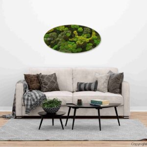 Machový obraz Elipsa BEMOSS® ORTHO TELDE je vizuálnym zážitkom, ktorý do vášho interiéru vnáša pocit sviežosti a spojenia s prírodou. Kompozícia rôznych odtieňov machu, od sýtej zelenej až po jemné žltkasté tóny, vytvára hĺbku a prirodzený kontrast, ktorý okamžite upúta pozornosť. Vďaka svojim tvarom a detailnej textúre pôsobí obraz ako kúsok živej prírody zachytený v jedinečnom umeleckom prevedení.