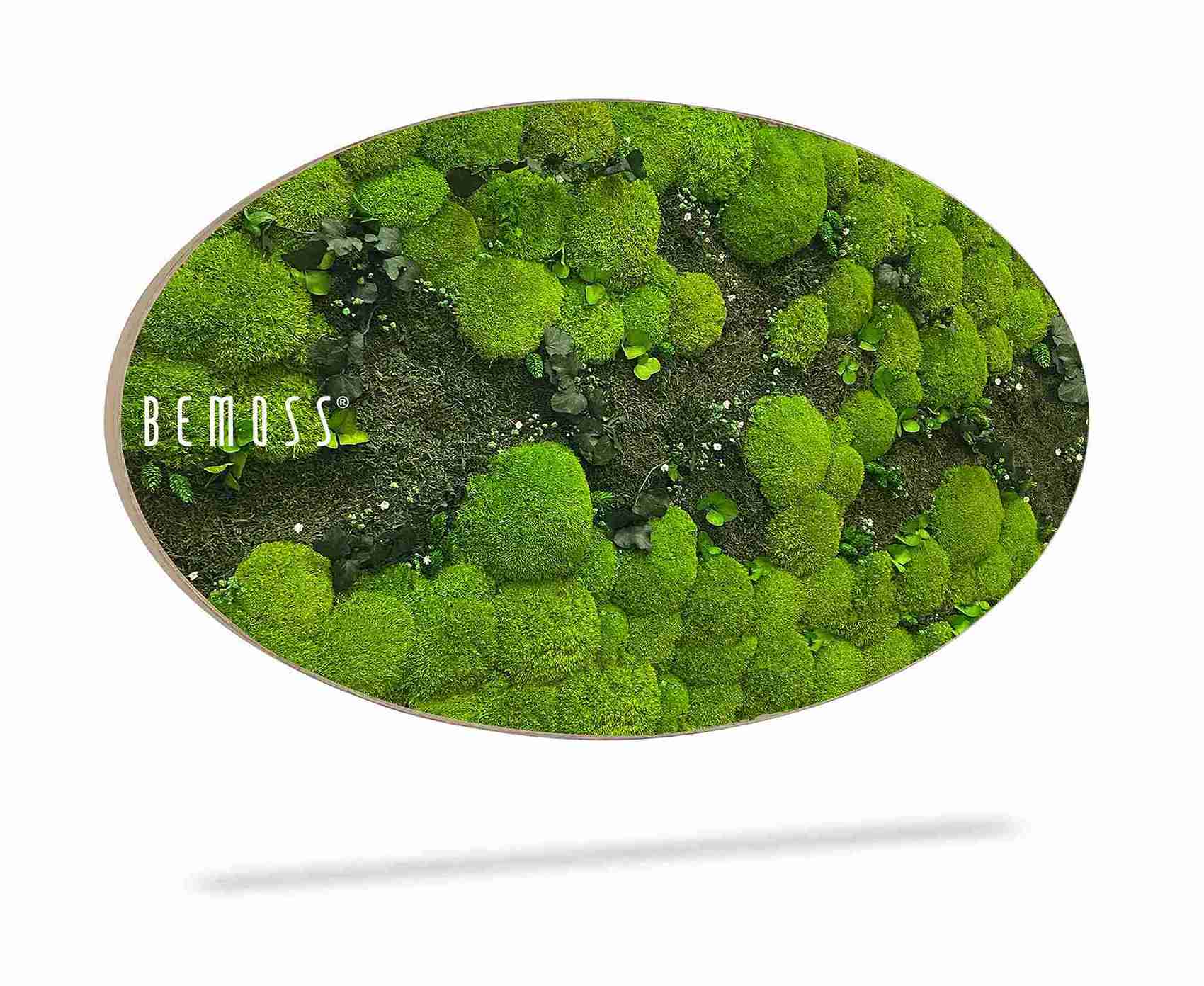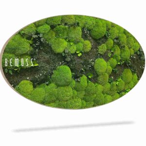 Elipsovitý formát navyše krásne vynikne samostatne, ale aj v kombinácii s ďalšími machovými dekoráciami. Povrch obrazu pomáha jemne tlmiť zvuk, čím prispieva k príjemnejšej atmosfére v miestnosti. Obraz je dostupný v typizovaných rozmeroch, pričom na želanie ho vieme zhotoviť aj na mieru podľa konkrétnych požiadaviek. Výsledné prevedenie je možné doplniť aj o rám, aby dokonale ladilo s charakterom vášho interiéru.