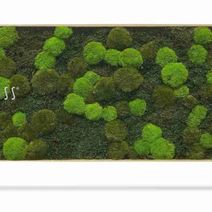 Machový obraz FLATMOSS & BOLMOSS Doven mono je ideálnym riešením pre milovníkov minimalistického dizajnu a prírodných prvkov. Kombinácia plochého a kopčekového machu v jednotnom zelenom odtieni vytvára prirodzenú štruktúru s jemným 3D efektom, ktorý pripomína pokojné machové porasty. Vďaka absencii kontrastných farieb pôsobí obraz čisto, elegantne a ľahko sa kombinuje s rôznymi štýlmi interiéru.