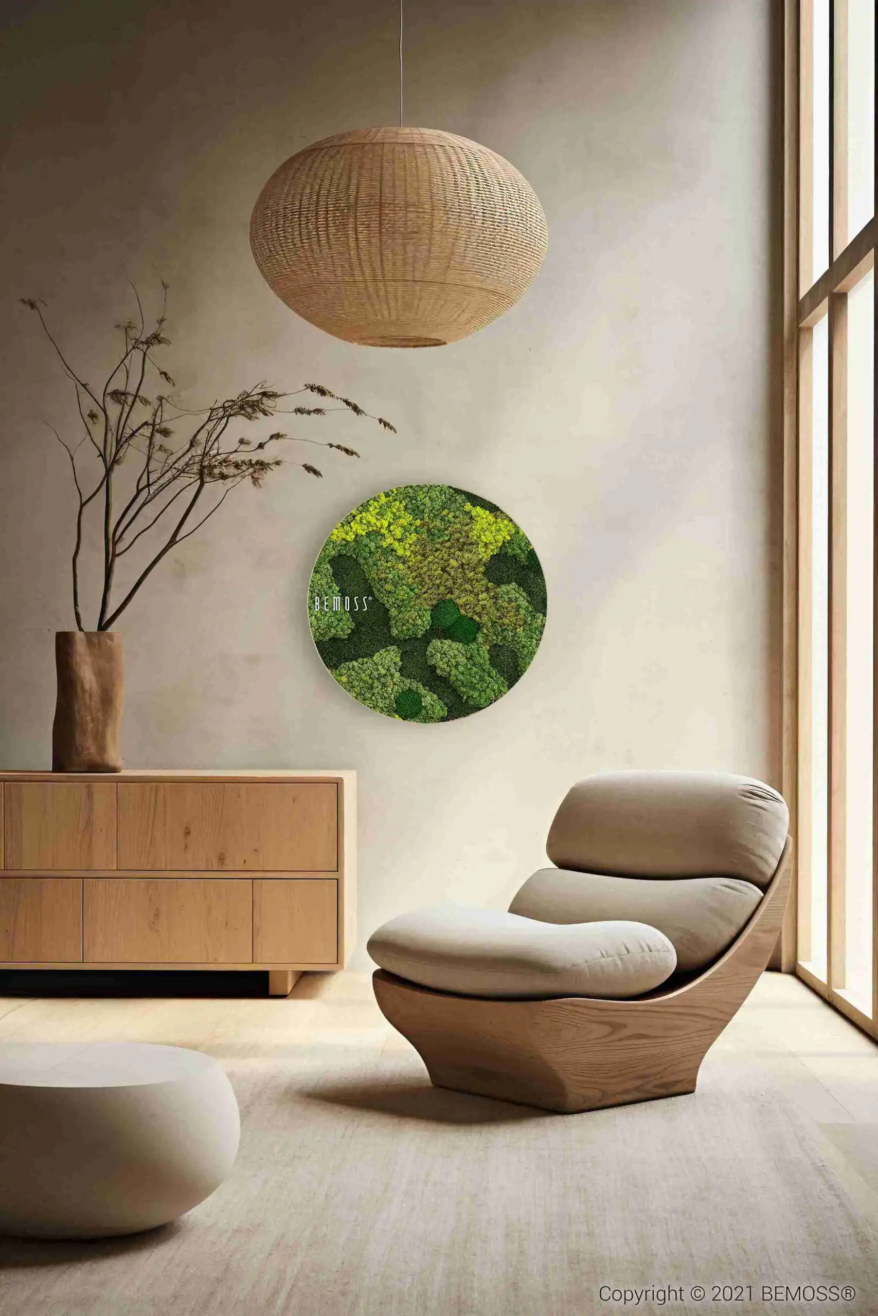 Vyrobený z 100% prírodného stabilizovaného machu, tento obraz je bezúdržbový a nepotrebuje žiadnu špeciálnu starostlivosť. Okrem estetickej hodnoty je aj hypoalergénny, ekologický a zlepšuje akustiku, vďaka čomu sa dokonale hodí do priestorov, kde chcete vytvoriť pokojné a harmonické prostredie.