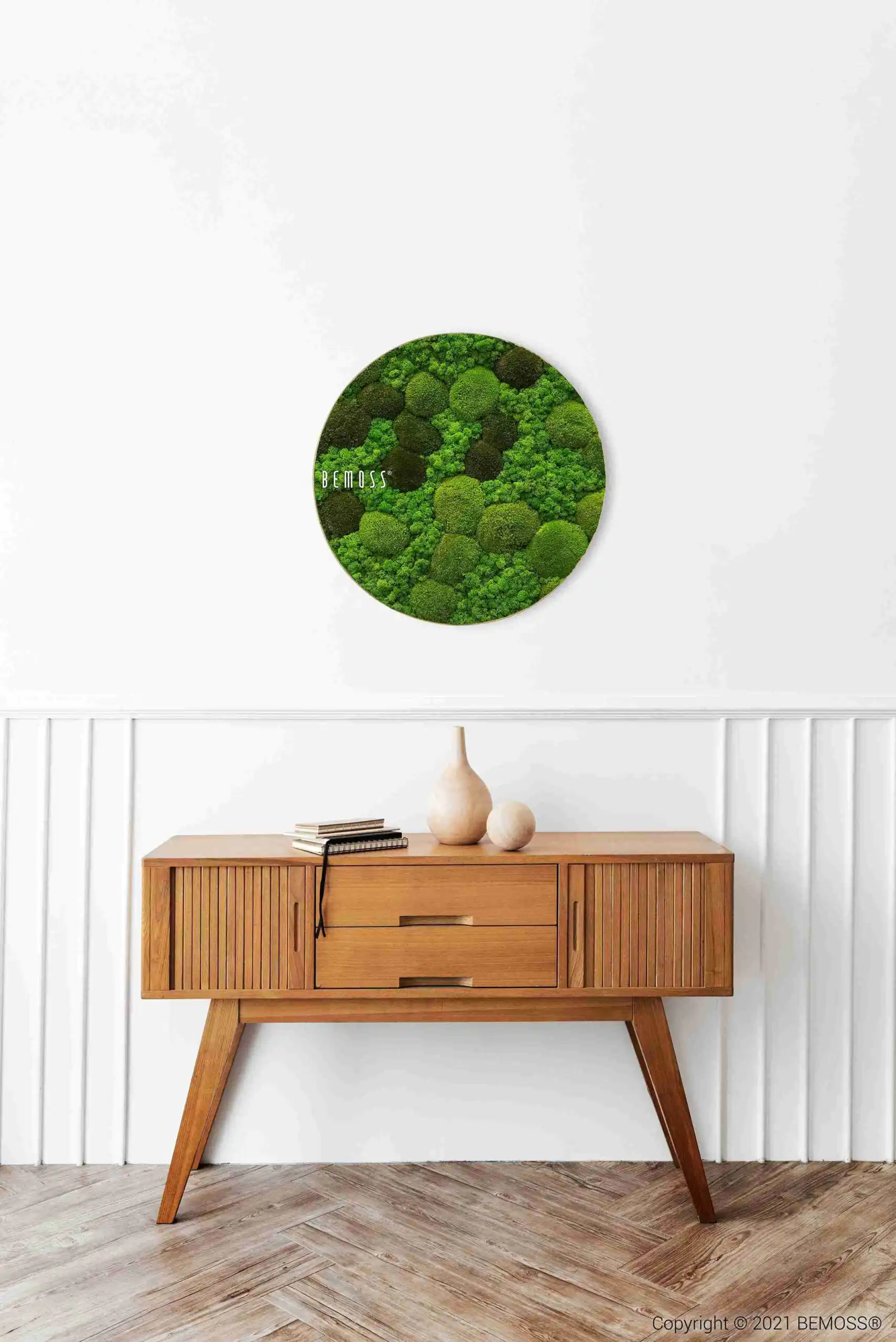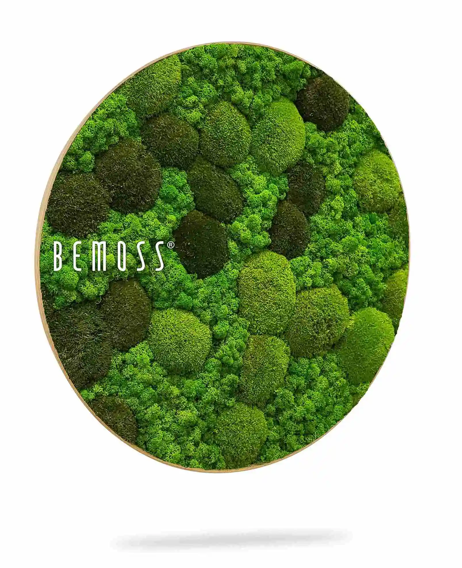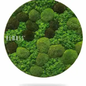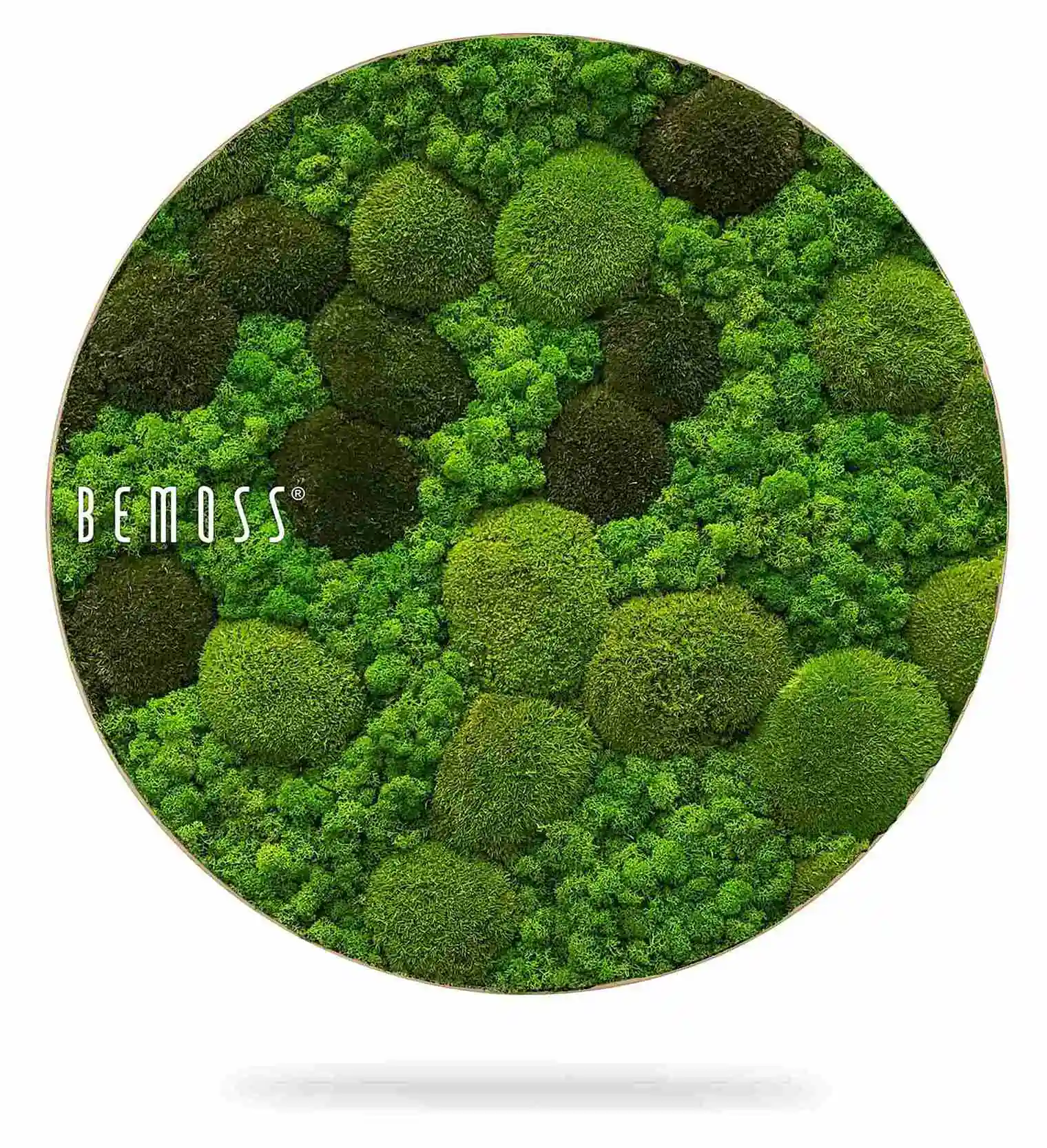 Machový obraz BEMOSS® ORTHO MONETO je jedinečný prírodný doplnok, ktorý v sebe spája estetiku a funkčnosť. Jeho povrch tvorí kombinácia rôznych druhov stabilizovaného machu, ktorá vytvára zaujímavý 3D efekt a dodáva interiéru prirodzenú dynamiku. Odtiene sviežej a tmavozelenej farby spolu s guľovitými machovými štruktúrami pripomínajú scenériu prírodného lesa.